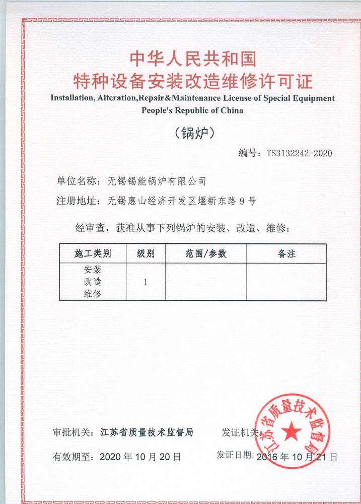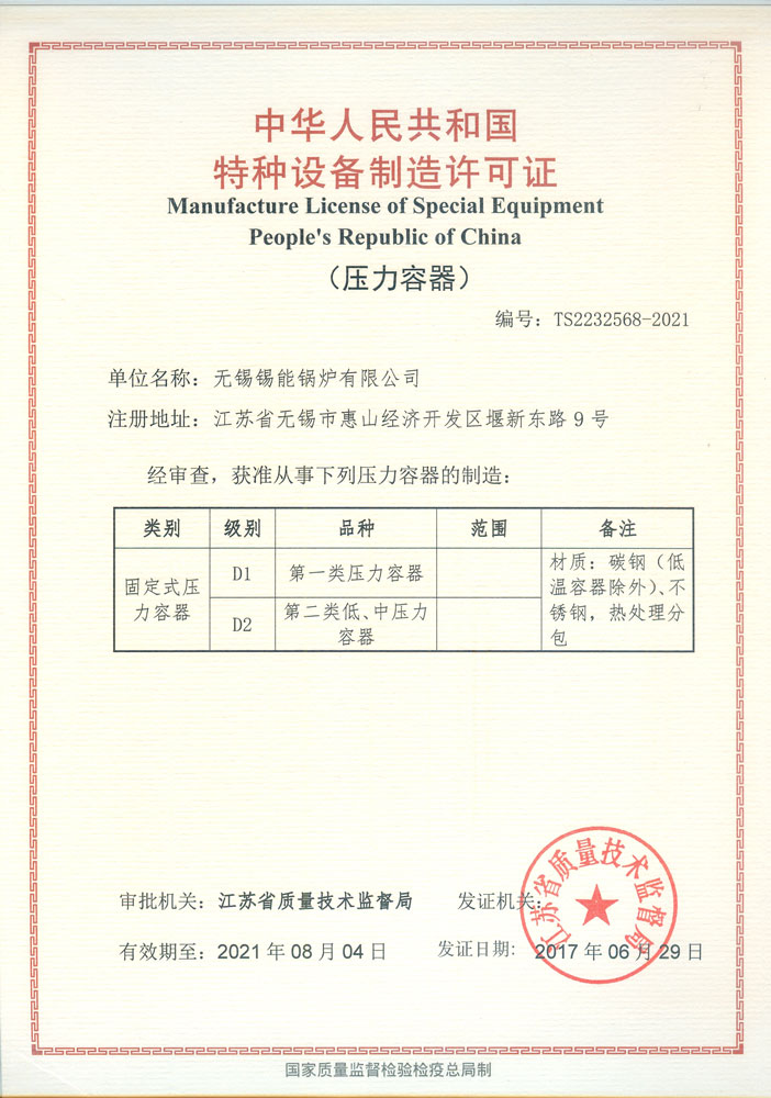 • Class-A Boiler Manufacturing License