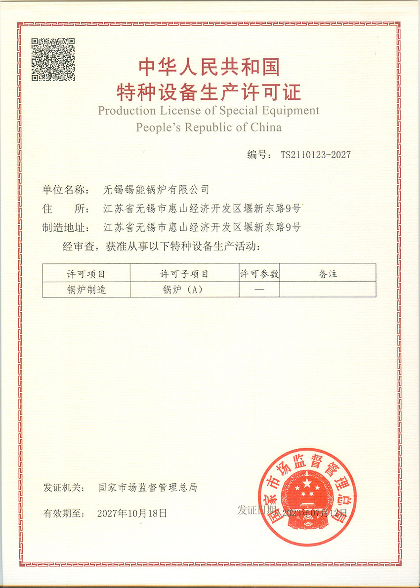 The A-level boiler manufacturing license is one of the important symbols representing the comprehensive strength of the company. The company was first obtained in October 2007 and needs to be reviewed and renewed every four years thereafter. The passing of this review also represents that the company has been constantly keeping up with the times in terms of design, manufacturing, testing, and inspection of Class A boilers, upgrading and transforming its soft and hard capabilities, and always maintaining a leading position in the boiler industry.
