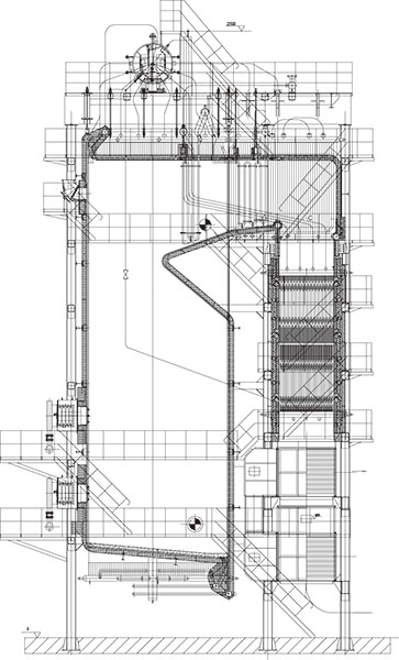 鍋爐適用于大型燃油氣蒸汽熱水鍋爐,采用全散裝結構,現場安裝??蓪崿F燃天氣(油)大容量高參數鍋爐。